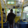 インテリアは、新調したブルーのシートと、わかりやすいイエローのポール類でまとめられ、日本語・英語・韓国語・中国語の順に表示される2画面液晶ディスプレイが天井の前後に設置されている点が特徴。ディスプレイには、例えば「かっぱ橋道具街の紹介」など、観光名所の詳細情報も流れる。