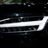 新型XC90の外観は、従来のボルボ車とは異なる新世代デザインを導入。斬新なヘッドライトに、縦基調のフロントグリルを組み合わせた。ヘッドライトには、T字型のランニングライトを採用。ボルボカーズは、「北欧の神話に登場する神、トールの持つ武器、トールハンマーがモチーフ」と説明する。