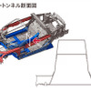S660のようなルーフがないオープンカーの場合、車体上部に骨格を組み込めないため、ボディ剛性はすべて“腰下”が担うことになる。S660は、ねじり剛性を確保するため、直線的なの補強材「V字ブレース」が前後に設けられている。