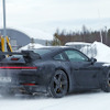 巨大なリアウイング!ポルシェ 911 GT3 新型プロトタイプ、豪雪を駆ける