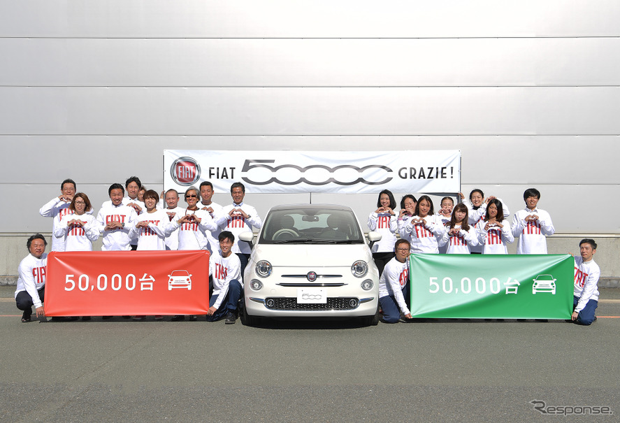 フィアットの代名詞、『500(チンクエチェント)』と『500C』の日本への累計輸入台数が、導入から12年目で5万台を突破した。11月15日、愛知県豊橋港に陸揚げされ、FCAジャパン新車整備センターに搬入された記念すべき5万台目の500が、報道陣に公開された。