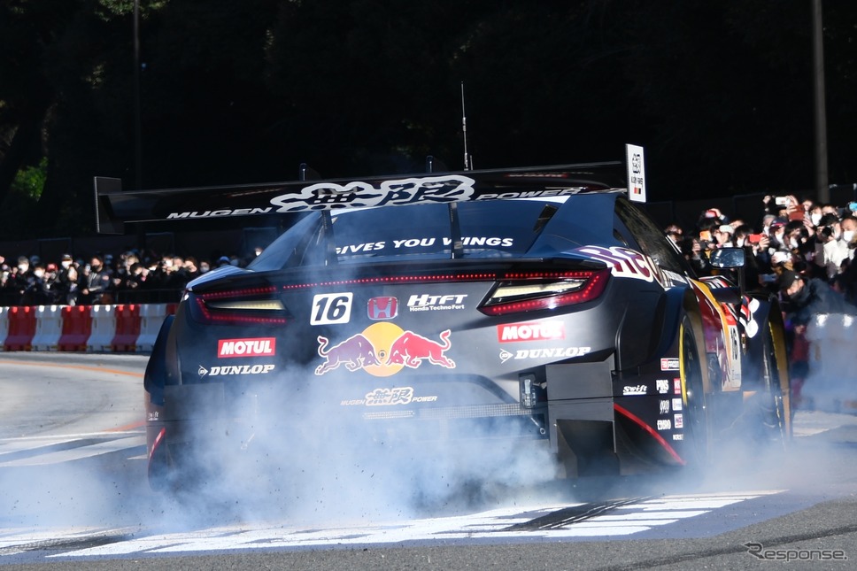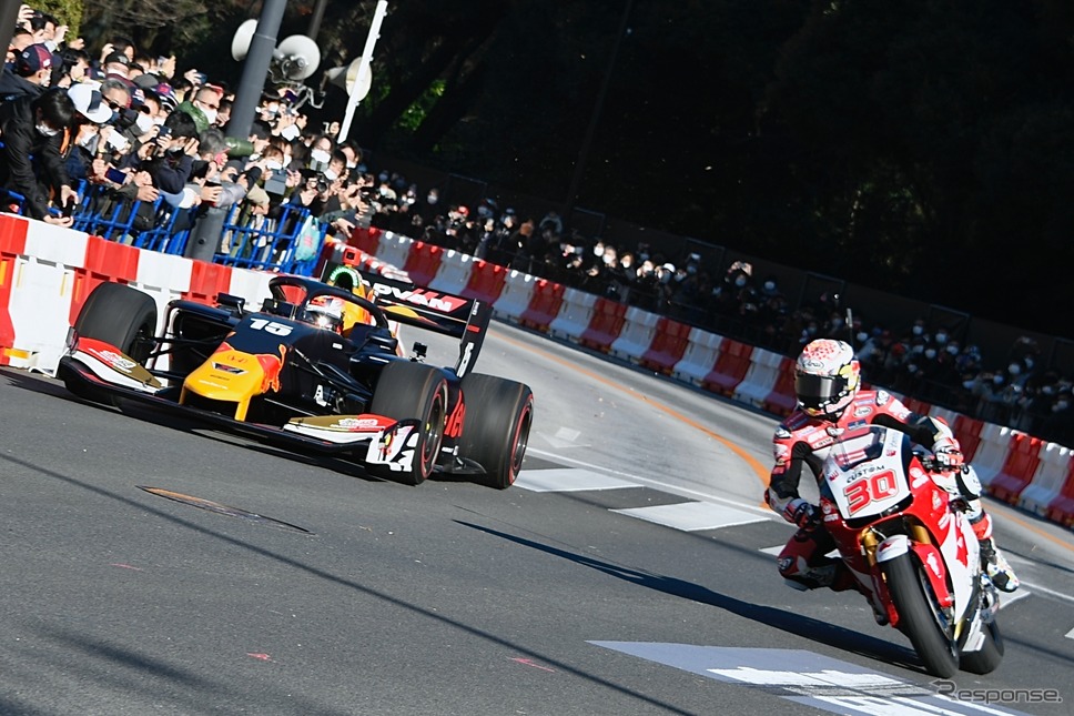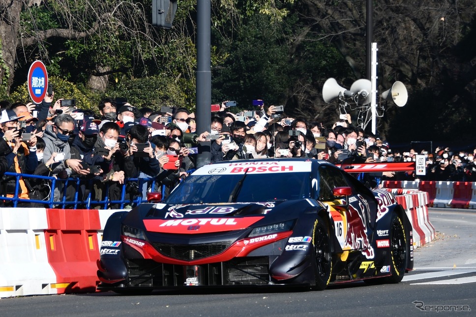 サーキットでも体感できない! レーシングマシンの轟音…選手はぶっつけ本番、公道デモラン