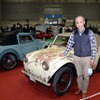 そのうちの2台も(!)見学できるのは貴重な体験だと、林氏に質問する来場者は引きも切らなかった。乗り心地は「遊園地の延長みたいなもん。ヨタヨタ走る」とか。シトロエン『2CV』を参考にしたといわれ、巻き取り式の幌や、真ん中から上方にはね上げるサイドウインドー、パイプ構造のシートなど、なるほどと思われる機構が随所に見られた。
