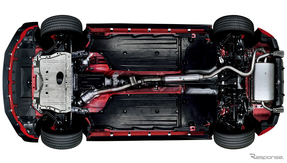 近年のクルマはフロア下がカバーに覆われているものが多い。これまでだったら、エンジン、ミッション、エキゾーストパイプなどがむき出しだったが、そこにカバーがされてフラット化されていることが多い。これは空力的な効果を狙ってのもの。フロア下を綺麗に空気が流れると、空気抵抗が減るので燃費が良くなる。走行時の風の抵抗による騒音も静かにすることができる。スーパーカーと言われるようなフェラーリやポルシェなどでは、1980年代から当然のようにフラット化されていたが、国産車で300万円以下のクルマでもカバーが付けられるようになったのは、ここ5年くらい。空力的な改善は大衆車にも及んできているのだ。