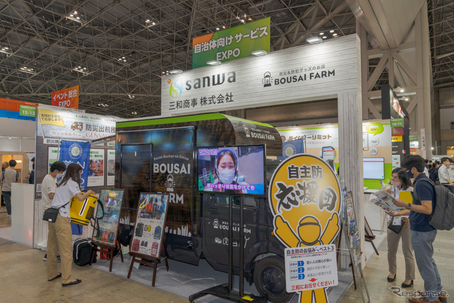 東京ビッグサイトで7月1日まで開催されている地域防災EXPO(自治体・公共 Week)。三和商事株式会社のブースに、軽トラックが展示されている。