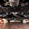 フロア下を見ると、エキゾーストのセンターパイプがもっとも低い位置になっているので、大きく車高を落とすとここが最低地上高に抵触する可能性が高い。これから登場するであろう、最低地上高に配慮した排気系チューニングを行うのも対策のひとつになる。