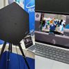 それを解決するのが、「リアルタイム音源探査システム」だ。六角形の平面アンテナに似た形状で、前面に多数の小さなが開いている。これらは小さなマイクロホンで、中央にはカメラがある。このカメラからの映像がパソコンの画面に表示されている。