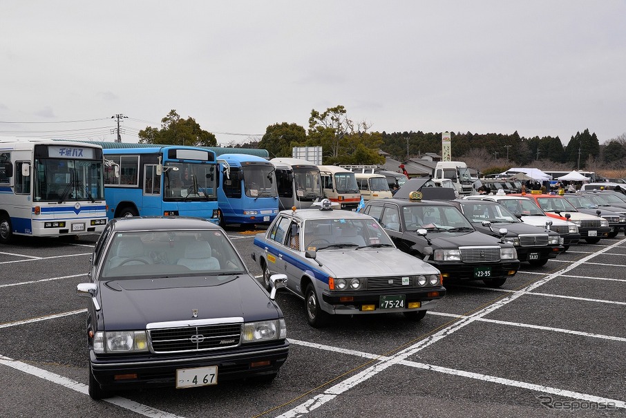 千葉県長柄町の都市農村交流センター前駐車場で3月24日、「商用車ミーティング関東」が開かれ、主に個人が趣味として楽しんでいるタクシーやバス、トラックなど、多種多様な「はたらくクルマ」が一堂に会した。