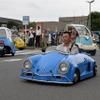 フォード『GT40』をモチーフに製作された『GT50』も、自力で仕上げた原付カー。1968年から2年連続でル・マンを制覇した時の「ガルフ・カラー」も鮮やかで、本来優勝車のゼッケン「6」であるが、オーナーがこのクルマを制作した時の年齢「66」としているのは、ちょっとした遊び心だ。