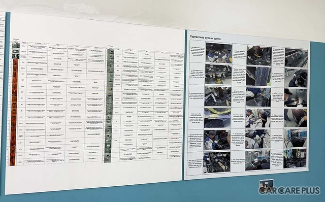 さらに注目したいのは、BPセンター内の壁面に貼り出された数多くの情報だ。工具それぞれに適した作業内容やメリット、デメリットなどが細かく整理され、常に確認できるように文章や写真が壁面に貼り出されていた。このような取り組みがメカニックの理解力や作業効率の向上につながっている。