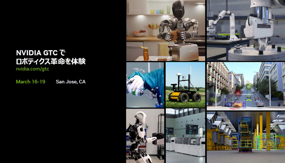 また、2026年3月16日から19日まで、シリコンバレーで世界最大級のGPUイベント「GTC 2026」が開催されます。このイベントでも「フィジカルAI」は最も重要なキーワードです。開発者、研究者、ビジネス リーダーたち一堂に会し、AIイノベーションの新たな潮流を探求する世界最高峰のAIカンファレンスです。ぜひ参加してください。お待ちしています。
