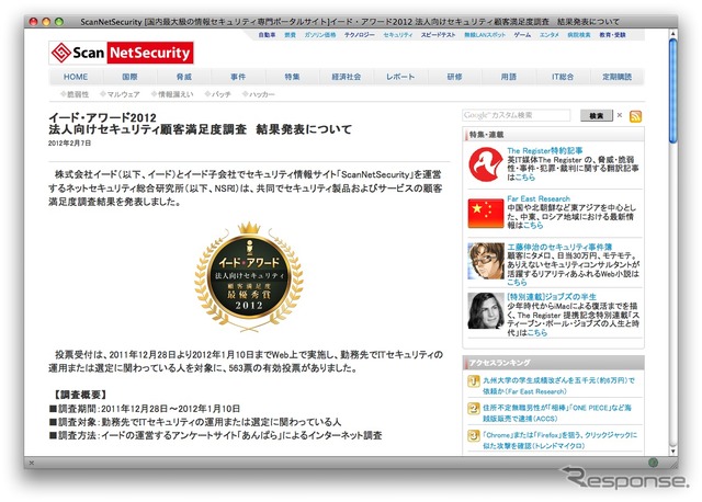 法人向けセキュリティ顧客満足度調査…イード・アワード2012 1枚目の写真・画像
