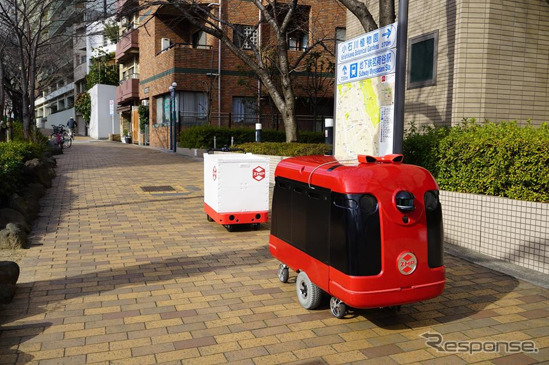 宅配ロボットを物流支援ロボットがカルガモ追従、流通コスト削減に向けZMPが実証実験 3枚目の写真・画像