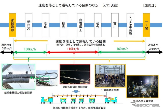 新白河-白石蔵王間に被害が集中…福島県沖地震で約940カ所が被災した東北新幹線 1枚目の写真・画像