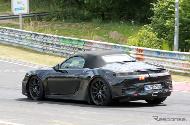 ポルシェ『ボクスターEV』、デュアルスクリーンのコックピットを初スクープ! 1枚目の写真・画像